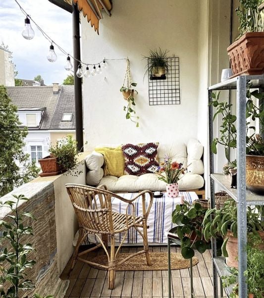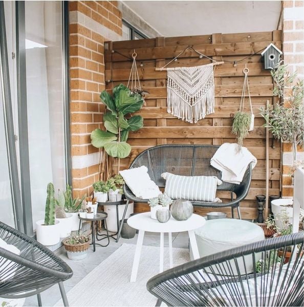 - Phong cách rustic: Phong cách rustic mang đến cảm giác gần gũi với thiên nhiên. Bạn có thể sử dụng các vật liệu và đồ dùng làm từ gỗ, tre, nứa để trang trí ban công theo phong cách này.