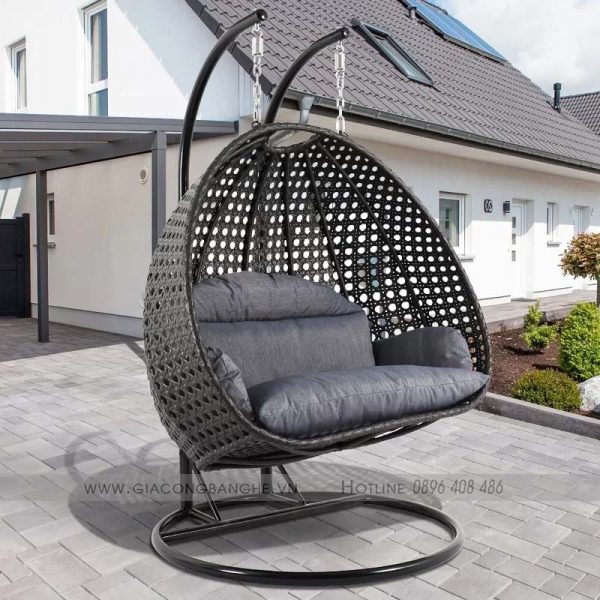Chiếc ghế xích đu đôi ngoài trời SKXD005 được thiết kế hình quả trứng độc đáo và đẹp mắt. Mẫu đẹp bền chắc ngồi thoải mái cho 2 người được.